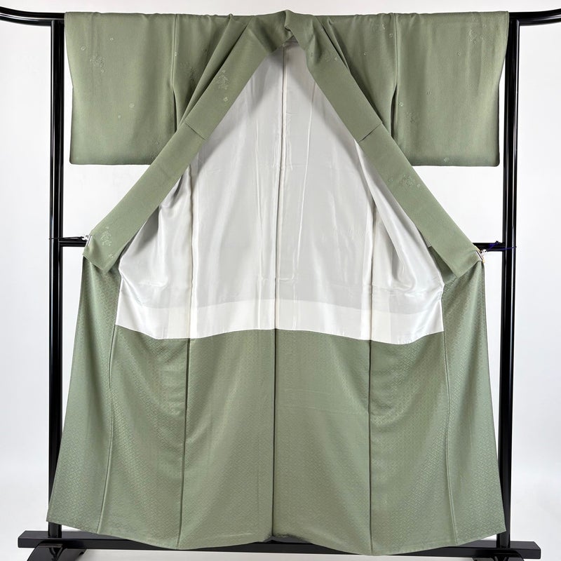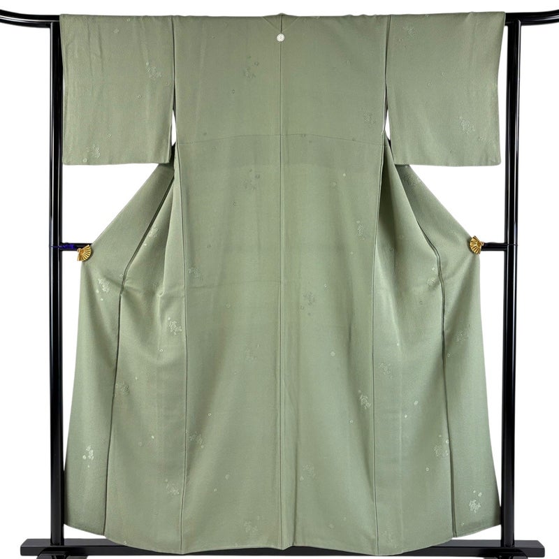 【色無地】 灰色系 灰緑 優品 A 約150cm~約159cm 裄丈63cm-64cm (M)size 袖丈46cm以下 4000-7980 美品 二万以下