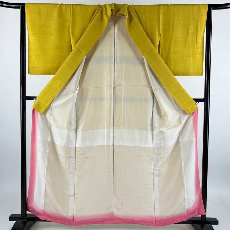 【色無地】 黄色系 黄色 優品 B 約150cm~約159cm 裄丈65cm (M)size 袖丈50cm-60cm -3980 二万以下