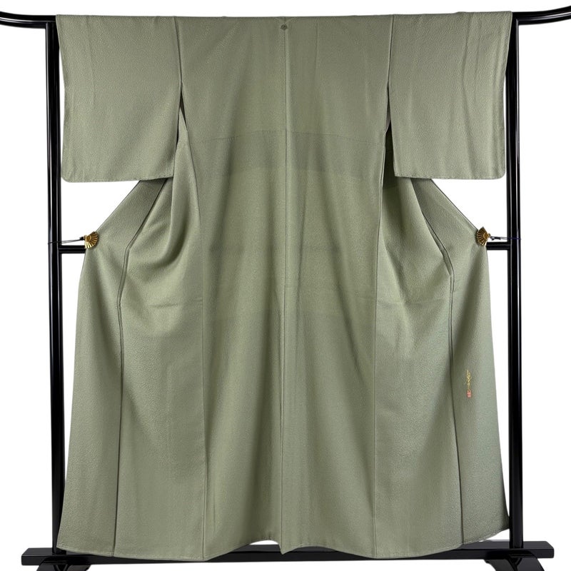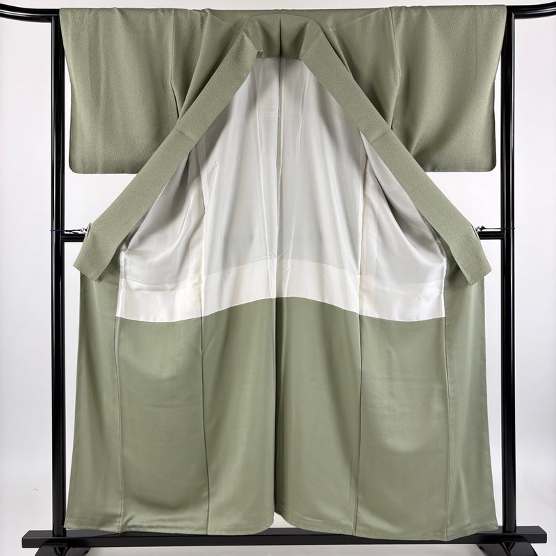 【色無地】 灰色系 灰緑 優品 A 約150cm~約159cm 裄丈63cm-64cm (M)size 袖丈48cm 4000-7980 美品 二万以下