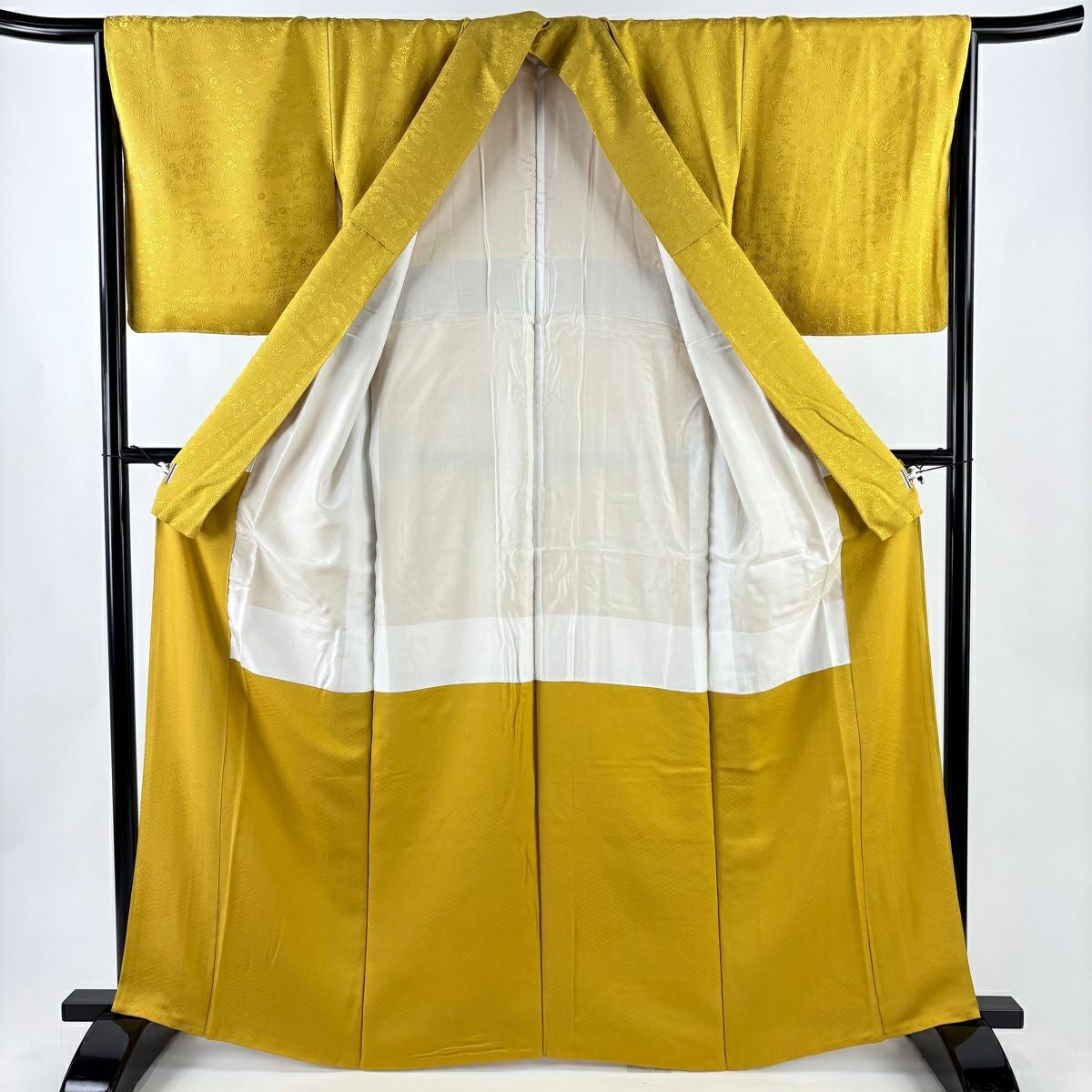 色無地は多彩な模様染めとは違い、用途によって使い分ける事が出来る利用範囲の広い一色染めの着物です。 節目節目でも着用される事も多く、いくつか例を挙げると花嫁の白無垢姿や還暦の紅衣装、喪服の黒無地、というように冠婚葬祭において昔から色無地は大切な時期に着用されてきました。 紋の数や色合い、地紋により慶弔用からお洒落に着こなせるのも色無地ならではの利点でもあります。
