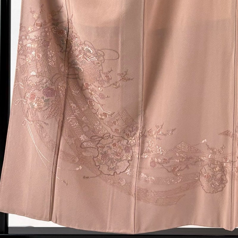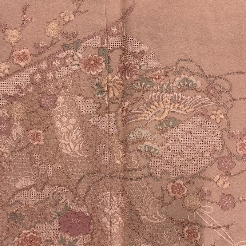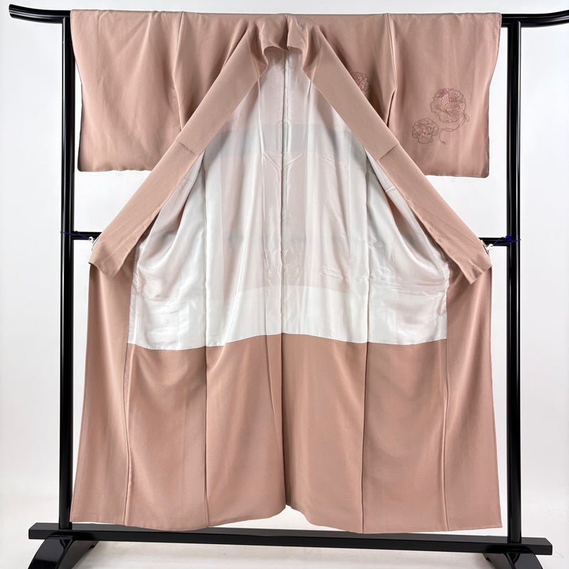 【付下げ】 赤系 ピンクベージュ 秀品 A 約150cm~約159cm 裄丈63cm-64cm (S)size 袖丈48cm 7990-9980 美品 二万以下
