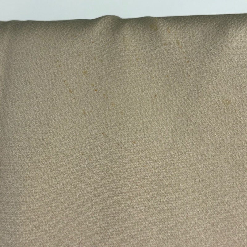 合わせる帯の色柄により、お召しいただく席を選べる付下げです。 帯により印象を変える事の出来る印象のお着物は、様々に活躍してくれることでしょう。 身丈を+4.0cm程、現在の長さから伸ばせます。 裄丈を+4.5cm程、現在の長さから伸ばせます。 一つ紋の縫い紋です。 左衿にシミ、表地所々と後身頃の所々と左後袖に薄いシミ、上前に点シミがございます。 衿裏と胴裏に黄変がございます。 リユース品としては良い状態で、まだまだご活用頂けると思われます。 ※なお、厳しく商品の状態確認を行っておりますが、記載の汚れ以外にも見落とし箇所がある可能性がある旨ご了承いただけますと幸いです。 沢山の商品の中からご覧いただき誠にありがとうございます。