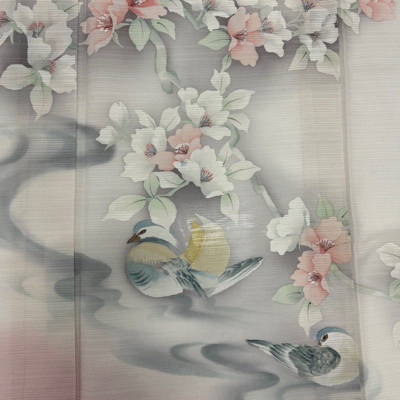 【着物ランク】秀品 【素材】正絹 【身丈】約164.5cm 【裄丈】約65cm 【袖丈】約49cm 【袖幅】約33cm 【前幅】約24cm 【後幅】約30.5cm 【サイズ】M 【着物仕立て】薄物 【着用時期】7~8月 【状態ランク】ランクA 【着物着用シーン】披露宴、パーティー、式典、食事会、お茶会、正月
