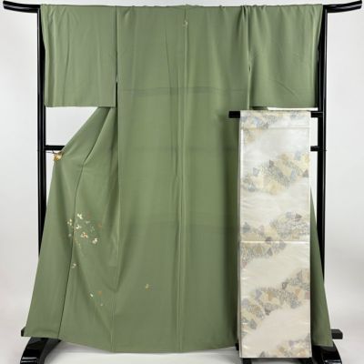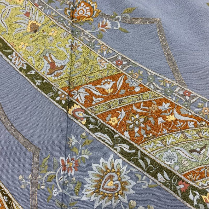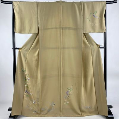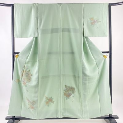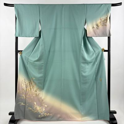 【着物ランク】名品 【素材】正絹 【身丈】約164.5cm 【裄丈】約67cm 【袖丈】約48cm 【袖幅】約34cm 【前幅】約24cm 【後幅】約30cm 【サイズ】M 【着物仕立て】袷 【着用時期】10~5月 【状態ランク】ランクB 【着物着用シーン】披露宴、パーティー、式典、食事会、お茶会、正月