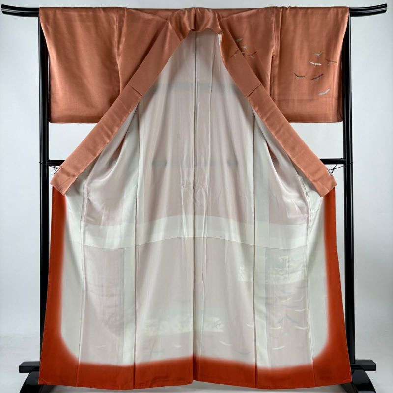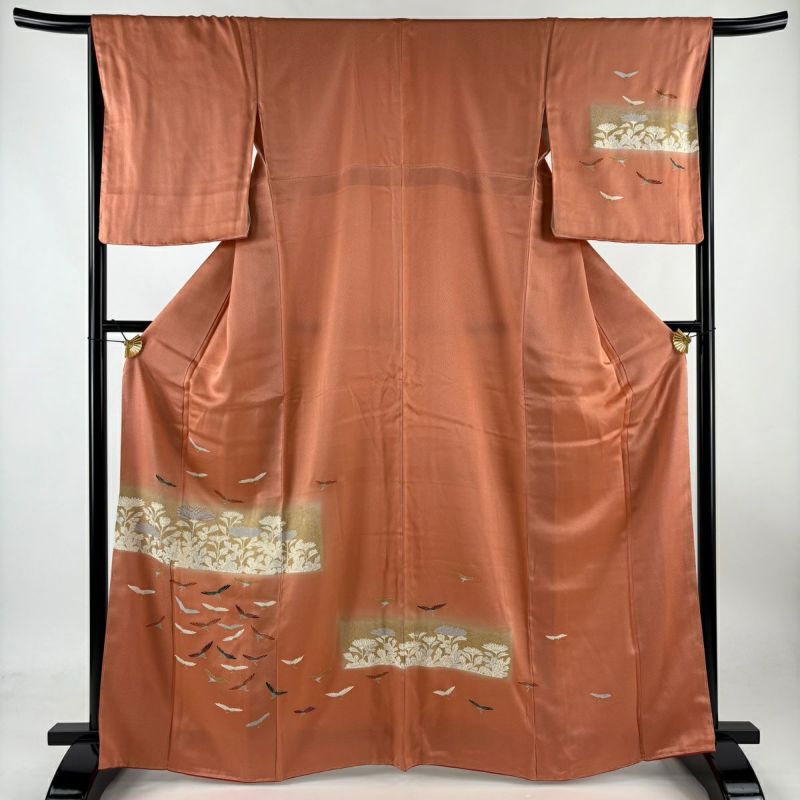 【付下げ】 赤系 サーモンピンク 秀品 A 約160cm~約169cm 裄丈66cm (M)size 袖丈50cm-60cm 7990-9980 美品 二万以下