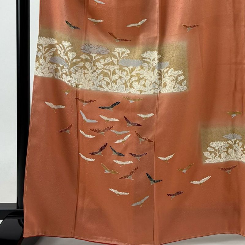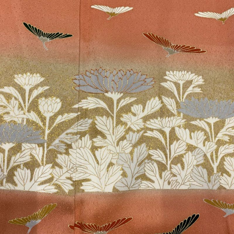 【着物ランク】秀品 【素材】正絹 【身丈】約166cm 【裄丈】約66.5cm 【袖丈】約51cm 【袖幅】約34cm 【前幅】約24cm 【後幅】約30.5cm 【サイズ】M 【着物仕立て】袷 【着用時期】10~5月 【状態ランク】ランクA 【着物着用シーン】披露宴、パーティー、式典、食事会、お茶会、正月