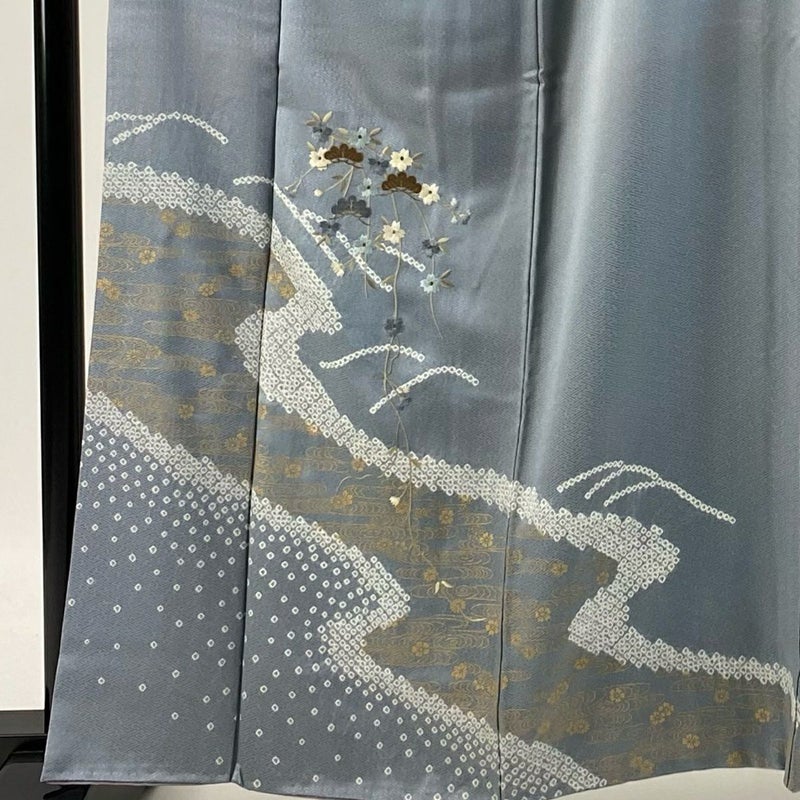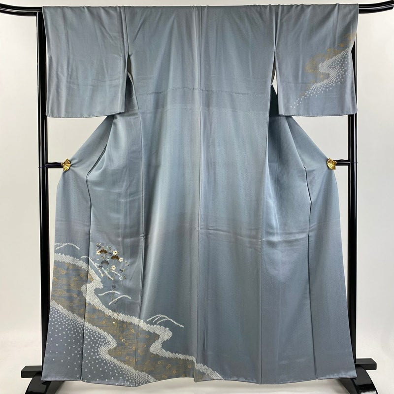 【付下げ】 灰色系 青灰色 秀品 C 約160cm~約169cm 裄丈66cm (M)size 袖丈48cm -3980 二万以下