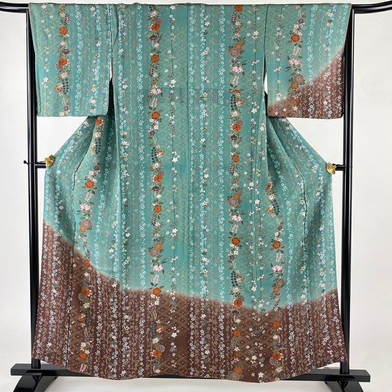 【付下げ】 灰色系 灰緑 秀品 A 約150cm~約159cm 裄丈65cm (M)size 袖丈48cm 7990-9980 美品 二万以下