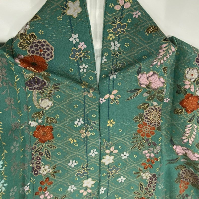 【着物ランク】秀品 【素材】正絹 【身丈】約158cm 【裄丈】約65cm 【袖丈】約48cm 【袖幅】約32.5cm 【前幅】約23.5cm 【後幅】約30cm 【サイズ】M 【着物仕立て】袷 【着用時期】10~5月 【状態ランク】ランクA 【着物着用シーン】披露宴、パーティー、式典、食事会、お茶会、正月