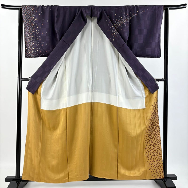 【着物ランク】秀品 【素材】正絹 【身丈】約159cm 【裄丈】約63cm 【袖丈】約47.5cm 【袖幅】約34cm 【前幅】約26cm 【後幅】約29cm 【サイズ】S 【着物仕立て】袷 【着用時期】10~5月 【状態ランク】ランクB 【着物着用シーン】披露宴、パーティー、式典、食事会、お茶会、正月