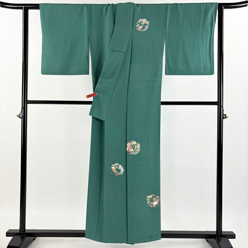 【付下げ】 緑系 緑 逸品 B 約150cm~約159cm 裄丈63cm-64cm (S)size 袖丈49cm 30000- 五万以下