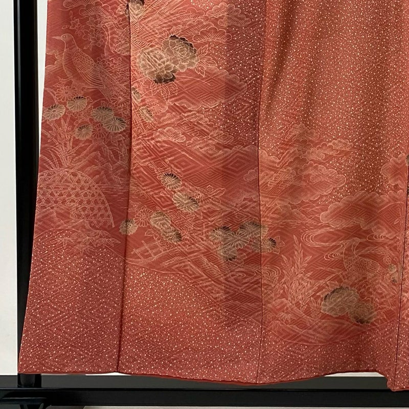【着物ランク】優品 【素材】正絹 【身丈】約156.5cm 【裄丈】約66cm 【袖丈】約48cm 【袖幅】約34.5cm 【前幅】約24.5cm 【後幅】約30cm 【サイズ】M 【着物仕立て】袷 【着用時期】10~5月 【状態ランク】ランクB 【着物着用シーン】披露宴、パーティー、式典、食事会、お茶会、正月