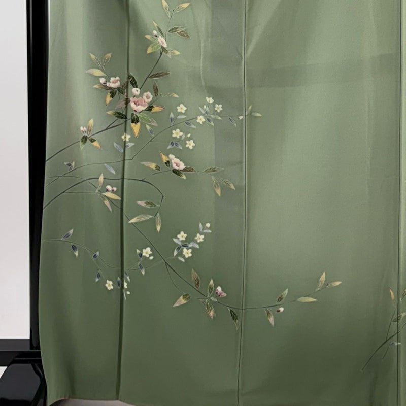 【付下げ】 緑系 薄緑 秀品 C 約160cm~約169cm 裄丈65cm (M)size 袖丈50cm-60cm -3980 二万以下