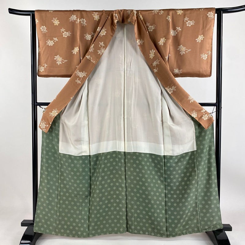 【付下げ】 赤系 赤茶 秀品 B 約160cm~約169cm 裄丈62cm以下 (S)size 袖丈48cm -3980 二万以下