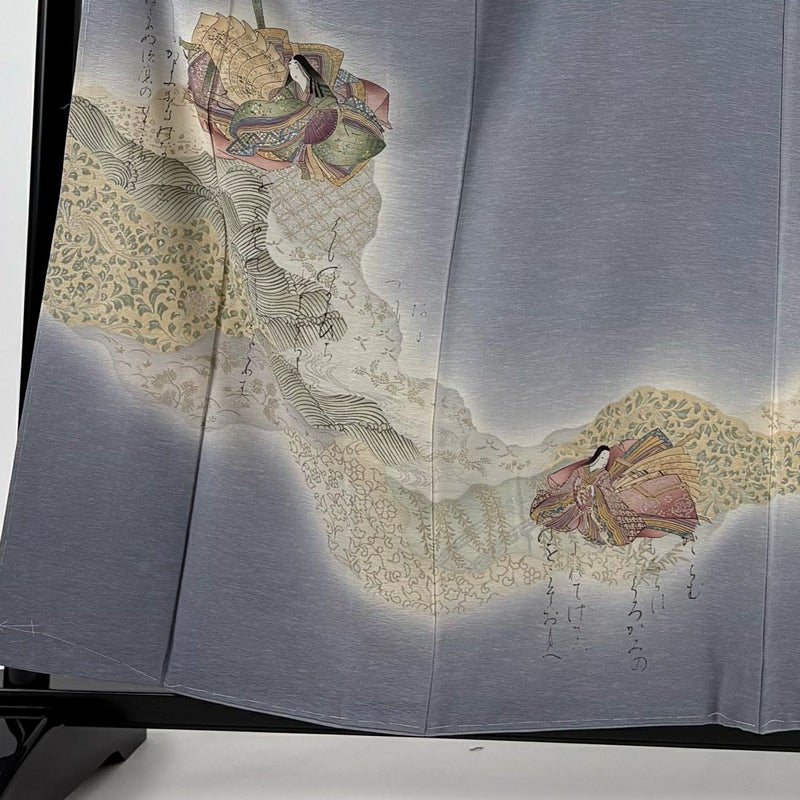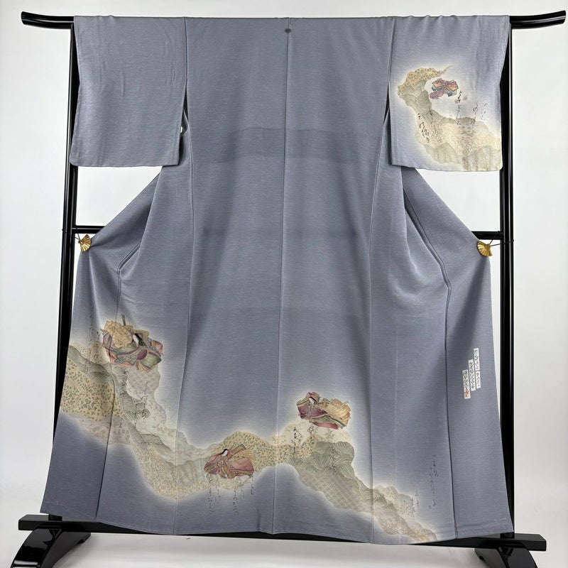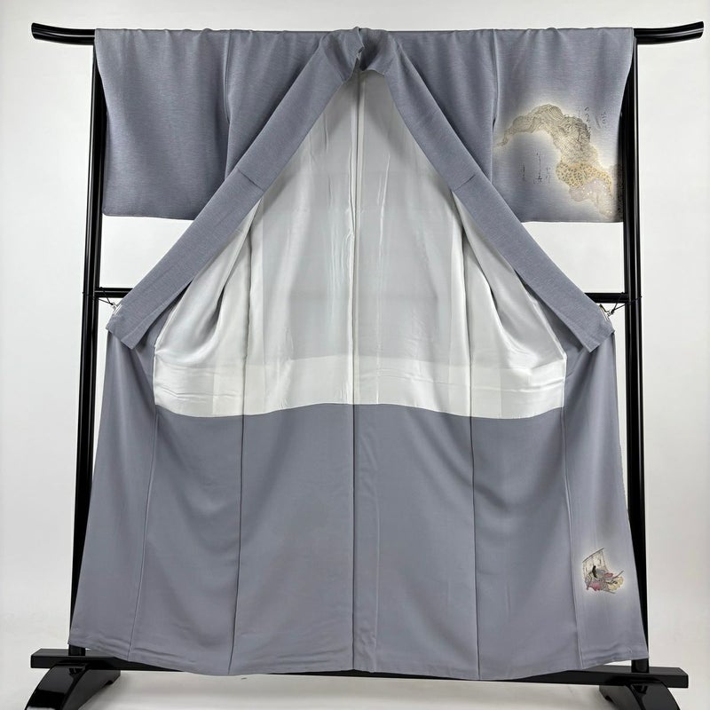 【付下げ】 灰色系 青灰色 名品 C 約150cm~約159cm 裄丈67cm-68cm (M)size 袖丈49cm 4000-7980 二万以下