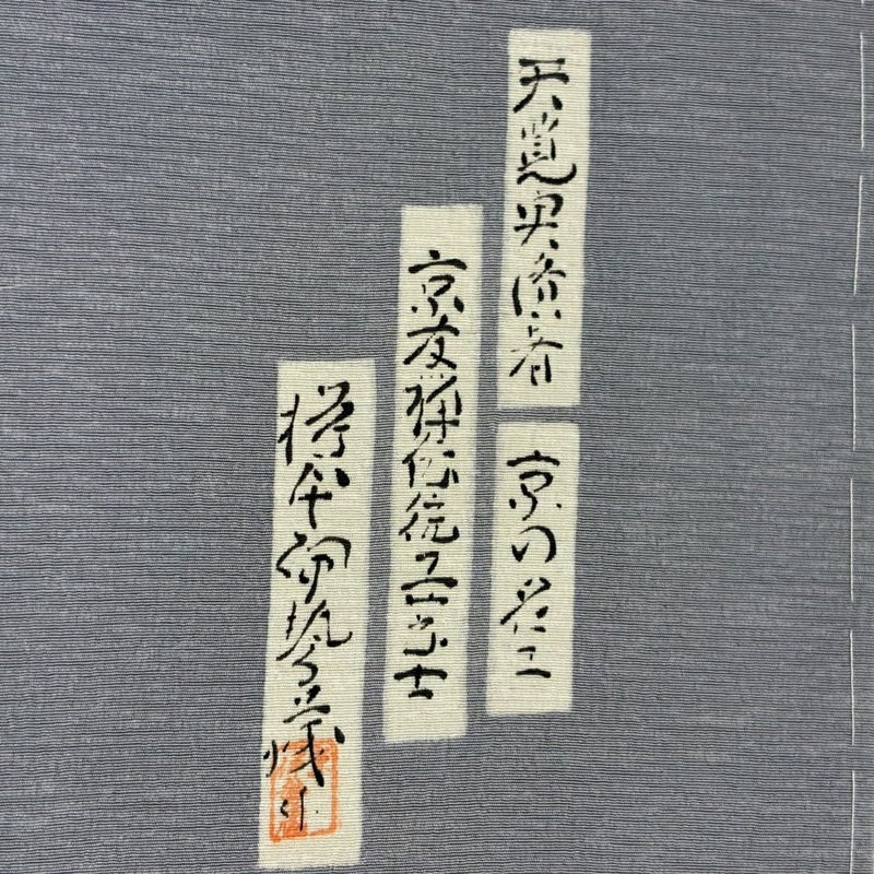 京友禅の伝統工芸士、樽本伊勢蔵の作品でございます。 合わせる帯の色柄により、お召しいただく席を選べる付下げです。 帯により印象を変える事の出来る印象のお着物は、様々に活躍してくれることでしょう。 ※身丈・裄丈の縫込みの長さは測っておりません。一つ紋の縫い紋です。 表地所々にヤケ、表地所々に金銀彩の変色がございます。 八掛にヤケがございます。 ご購入の際はその点ご留意ください。 ※なお、厳しく商品の状態確認を行っておりますが、記載の汚れ以外にも見落とし箇所がある可能性がある旨ご了承いただけますと幸いです。 沢山の商品の中からご覧いただき誠にありがとうございます。