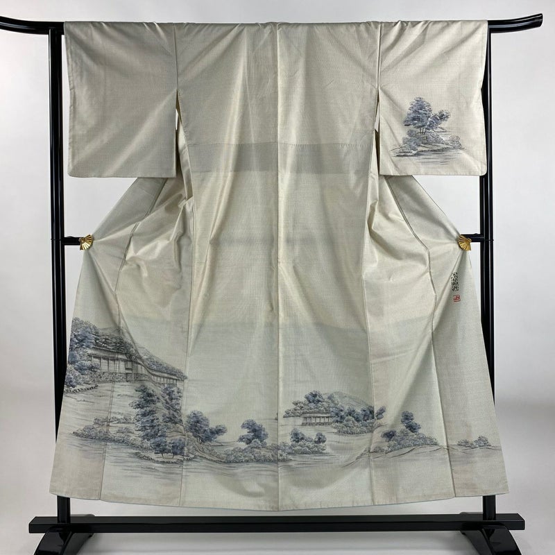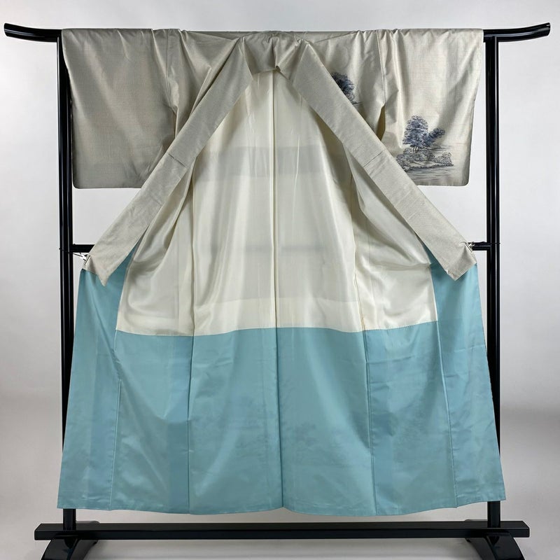 【付下げ】 灰色系 灰白 秀品 C 約150cm~約159cm 裄丈63cm-64cm (M)size 袖丈48cm -3980 二万以下