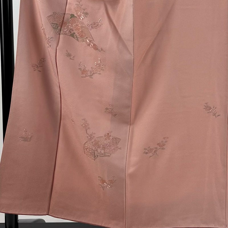 【付下げ】 赤系 ピンクベージュ 秀品 B 約150cm~約159cm 裄丈63cm-64cm (M)size 袖丈49cm -3980 二万以下