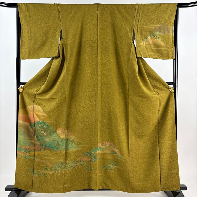 【付下げ】 緑系 鶯色 秀品 A 約160cm~約169cm 裄丈66cm (M)size 袖丈48cm 7990-9980 美品 二万以下