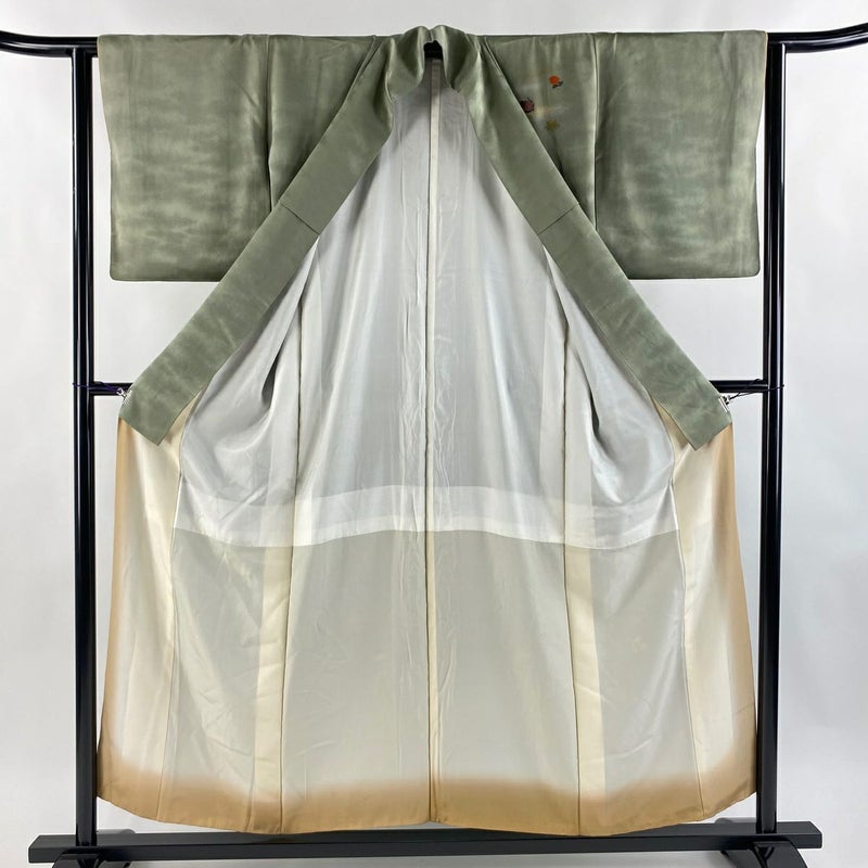 【付下げ】 灰色系 灰緑 秀品 C 約150cm~約159cm 裄丈62cm以下 (S)size 袖丈47cm -3980 二万以下