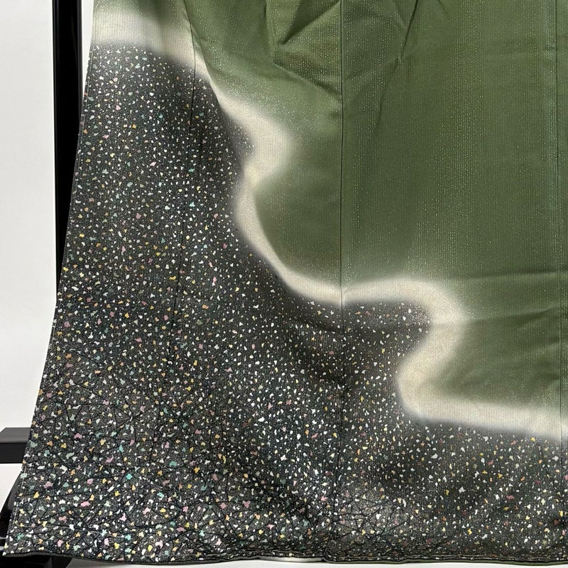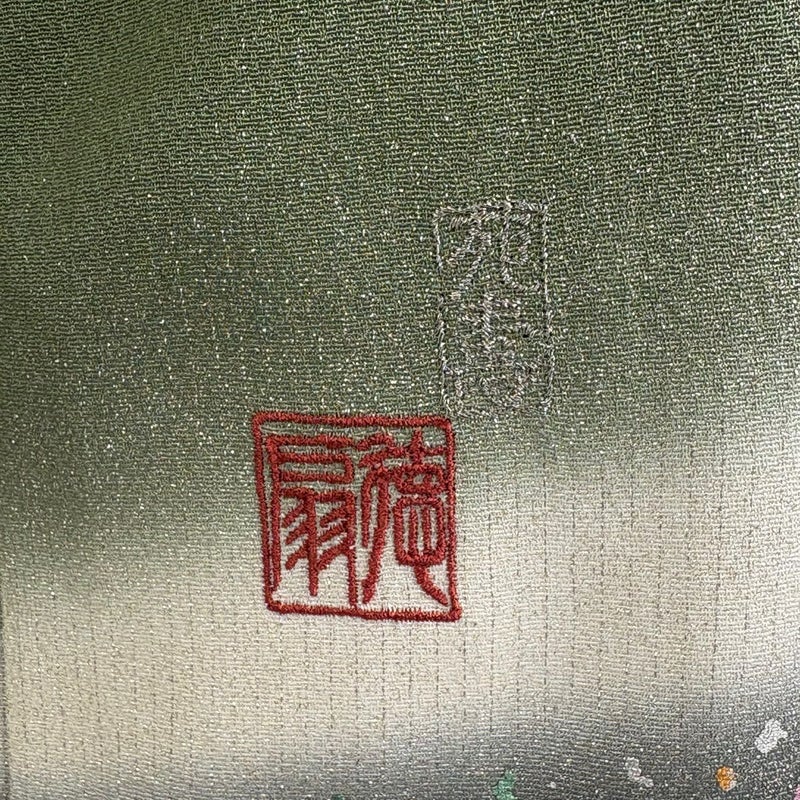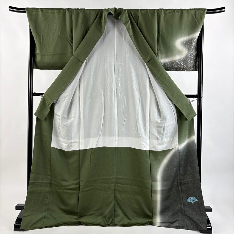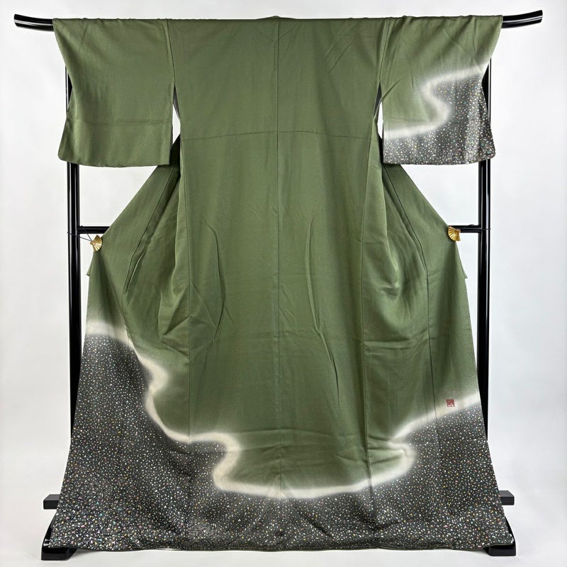 【付下げ】 緑系 鶯色 逸品 B 約170cm~約179cm 裄丈69cm以上 (L)size 袖丈49cm 30000- 五万以下