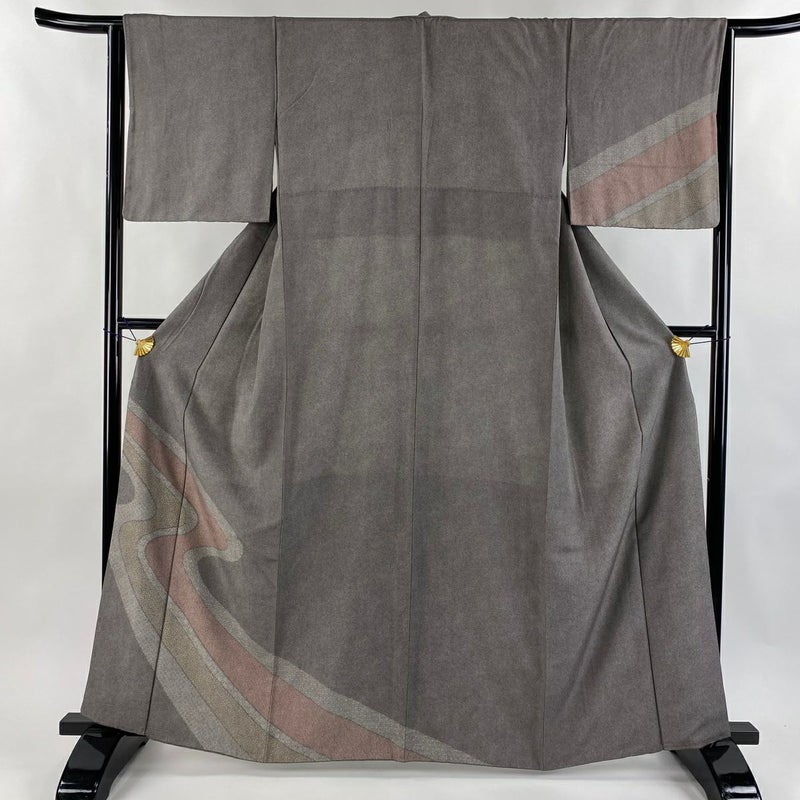 【付下げ】 茶系 茶紫 秀品 C 約160cm~約169cm 裄丈63cm-64cm (M)size 袖丈46cm以下 -3980 二万以下