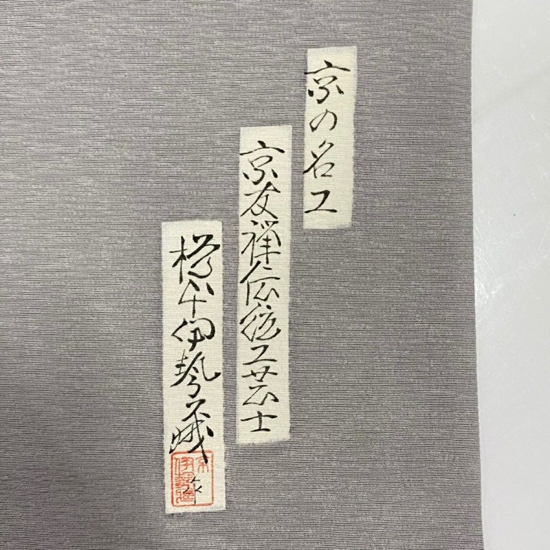 京友禅の伝統工芸士、樽本伊勢蔵の作品でございます。 合わせる帯の色柄により、お召しいただく席を選べる付下げです。 帯により印象を変える事の出来る印象のお着物は、様々に活躍してくれることでしょう。 ※身丈・裄丈の縫込みの長さは測っておりません。一つ紋の縫い紋です。 表地所々にヤケ、衿周りや両袖口中に汚れ、両衿先と右袖前後にシワがございます。 八掛にヤケ、胴裏にシワがございます。 ご購入の際はその点ご留意ください。 ※なお、厳しく商品の状態確認を行っておりますが、記載の汚れ以外にも見落とし箇所がある可能性がある旨ご了承いただけますと幸いです。 沢山の商品の中からご覧いただき誠にありがとうございます。