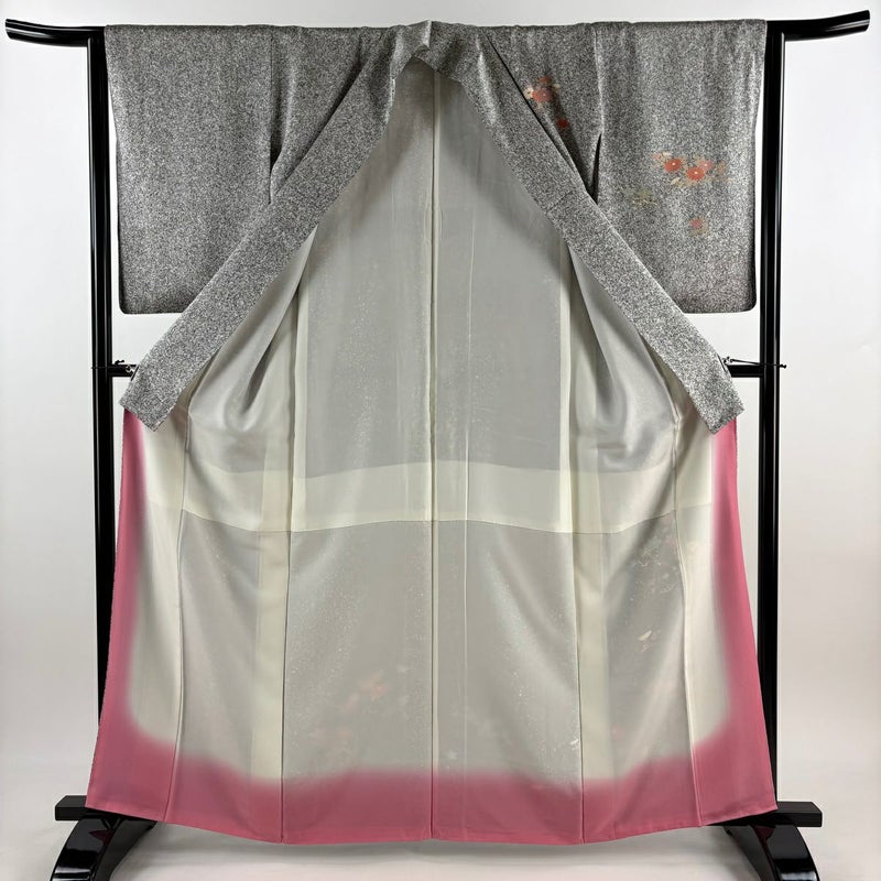 【付下げ】 灰色系 黒灰 優品 A 約160cm~約169cm 裄丈63cm-64cm (S)size 袖丈50cm-60cm 4000-7980 美品 二万以下