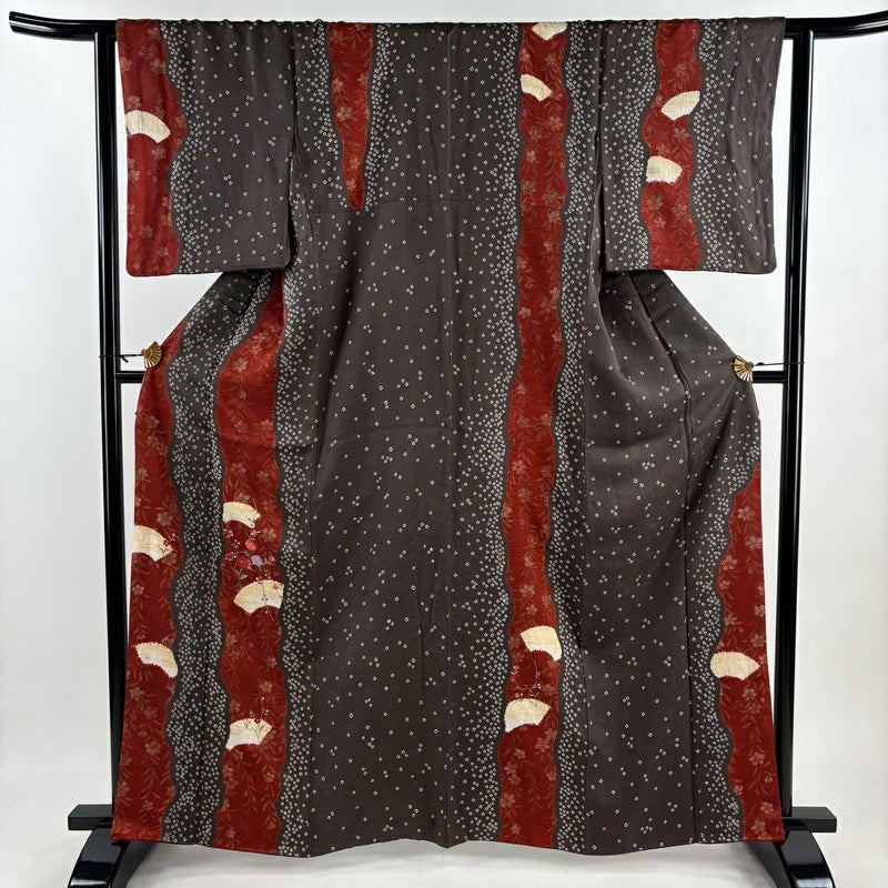 【付下げ】 茶系 茶紫 秀品 B 約160cm~約169cm 裄丈63cm-64cm (S)size 袖丈49cm 4000-7980 二万以下