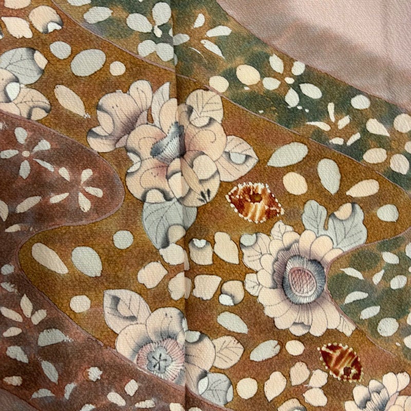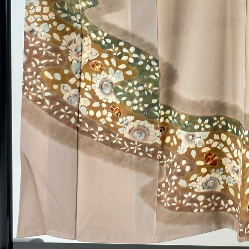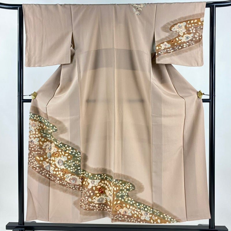 【付下げ】 赤系 ピンクベージュ 秀品 B 約150cm~約159cm 裄丈62cm以下 (S)size 袖丈46cm以下 -3980 二万以下