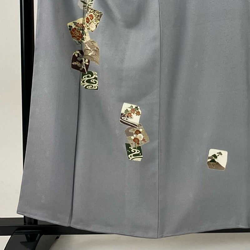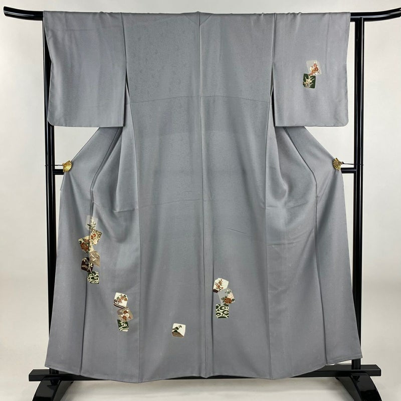【付下げ】 灰色系 青灰色 秀品 B 約150cm~約159cm 裄丈63cm-64cm (M)size 袖丈49cm -3980 二万以下