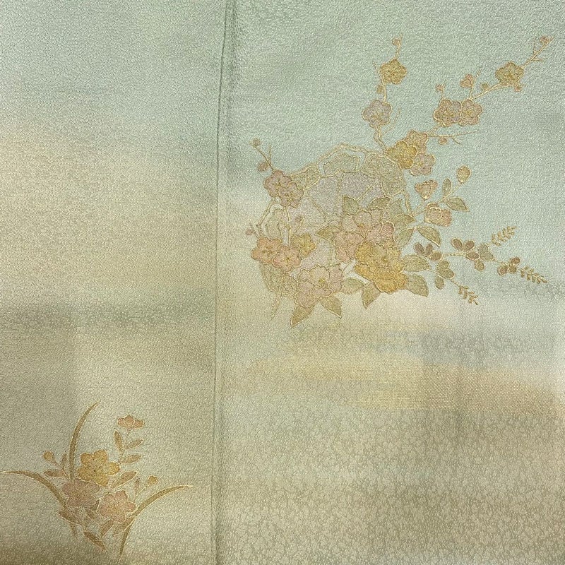 【付下げ】 緑系 薄緑 秀品 C 約150cm~約159cm 裄丈62cm以下 (S)size 袖丈47cm -3980 二万以下