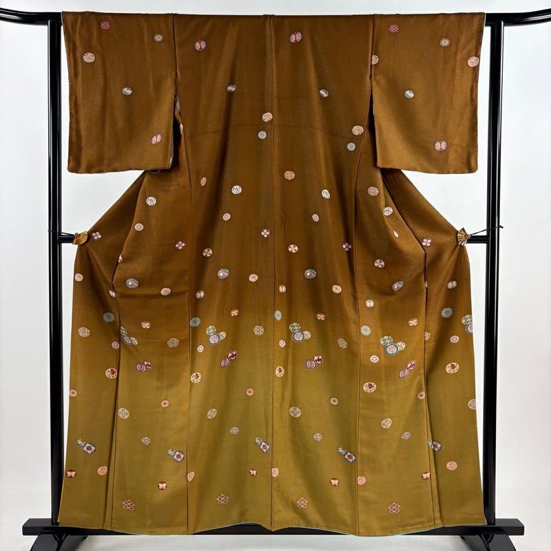 【付下げ】 茶系 茶色 秀品 B 約160cm~約169cm 裄丈63cm-64cm (S)size 袖丈49cm 4000-7980 二万以下