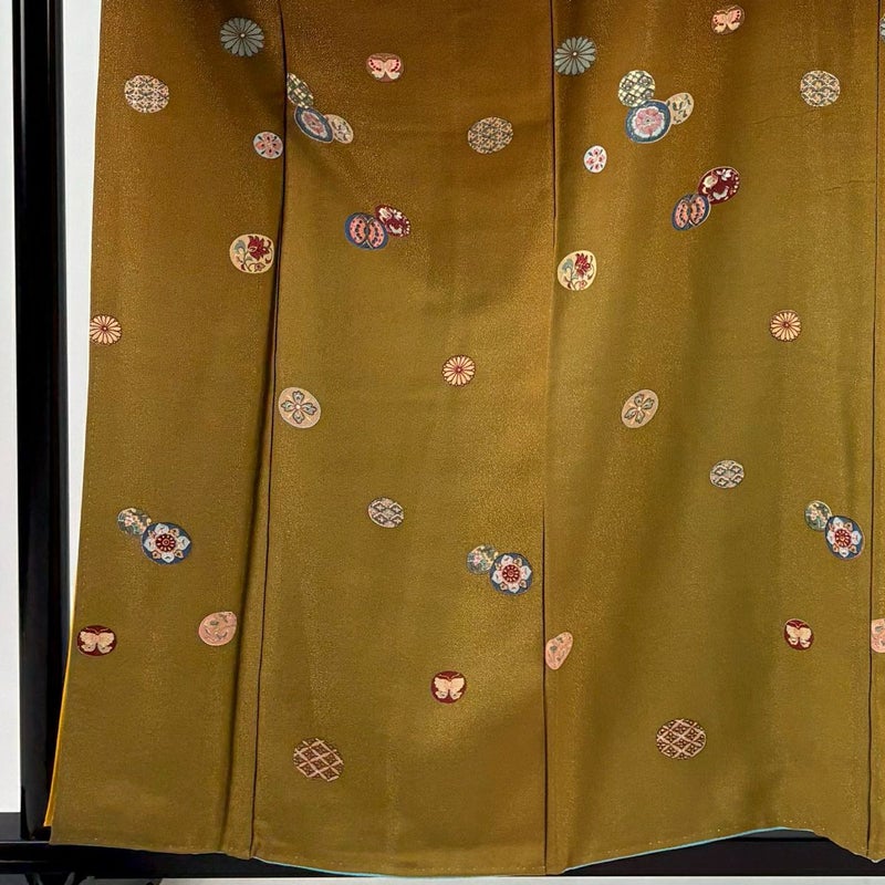 【着物ランク】秀品 【素材】正絹 【身丈】約160cm 【裄丈】約63cm 【袖丈】約49cm 【袖幅】約32.5cm 【前幅】約23cm 【後幅】約29.5cm 【サイズ】S 【着物仕立て】袷 【着用時期】10~5月 【状態ランク】ランクB 【着物着用シーン】披露宴、パーティー、式典、食事会、お茶会、正月
