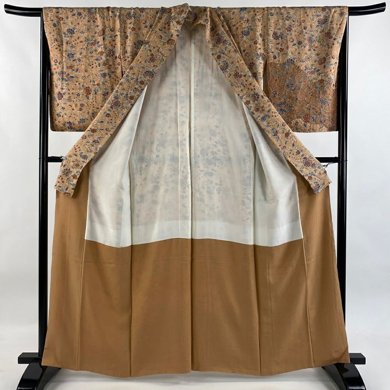 【着物ランク】秀品 【素材】正絹 【身丈】約162cm 【裄丈】約68cm 【袖丈】約55.5cm 【袖幅】約34cm 【前幅】約24cm 【後幅】約31cm 【サイズ】L 【着物仕立て】袷 【着用時期】10~5月 【状態ランク】ランクA 【着物着用シーン】披露宴、パーティー、式典、食事会、お茶会、正月