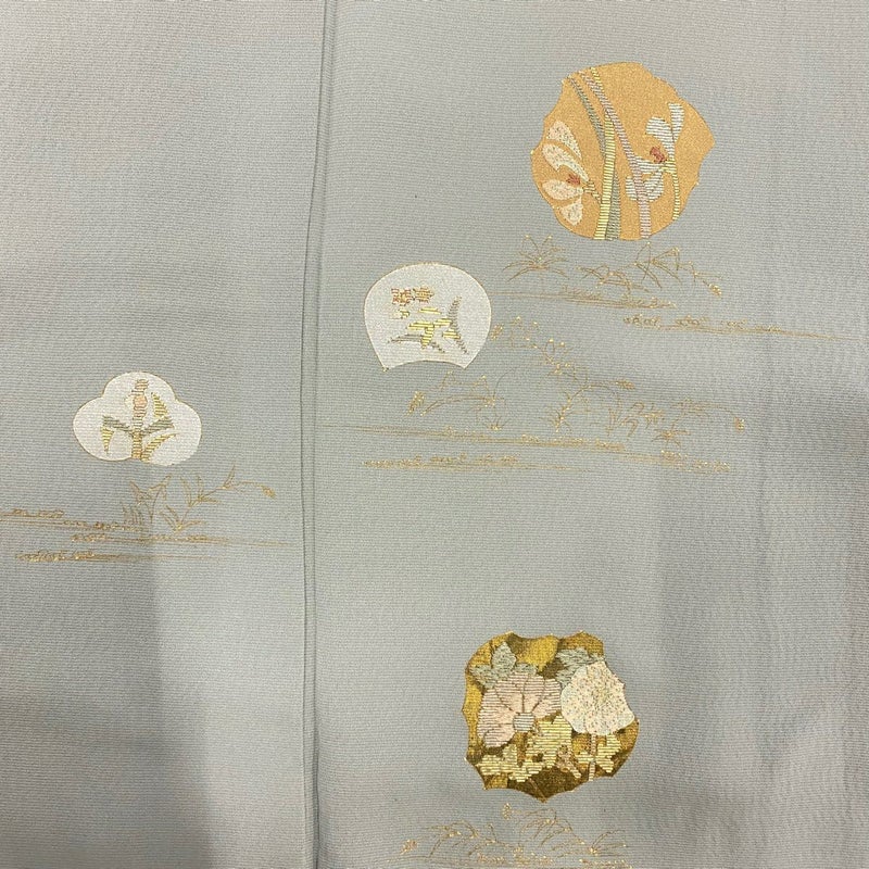 【付下げ】 灰色系 青灰色 秀品 B 約150cm~約159cm 裄丈63cm-64cm (S)size 袖丈46cm以下 -3980 二万以下