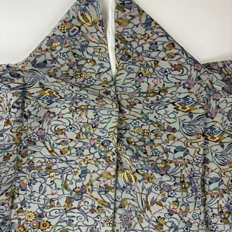 【着物ランク】秀品 【素材】正絹 【身丈】約152.5cm 【裄丈】約66cm 【袖丈】約44cm 【袖幅】約34.5cm 【前幅】約27cm 【後幅】約30cm 【サイズ】M 【着物仕立て】袷 【着用時期】10~5月 【状態ランク】ランクB 【着物着用シーン】披露宴、パーティー、式典、食事会、お茶会、正月