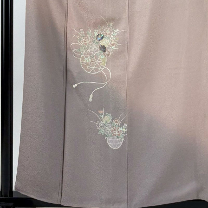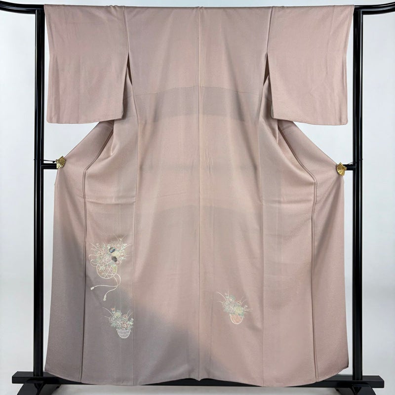 【付下げ】 赤系 ピンクベージュ 秀品 C 約150cm~約159cm 裄丈63cm-64cm (S)size 袖丈50cm-60cm 4000-7980 二万以下