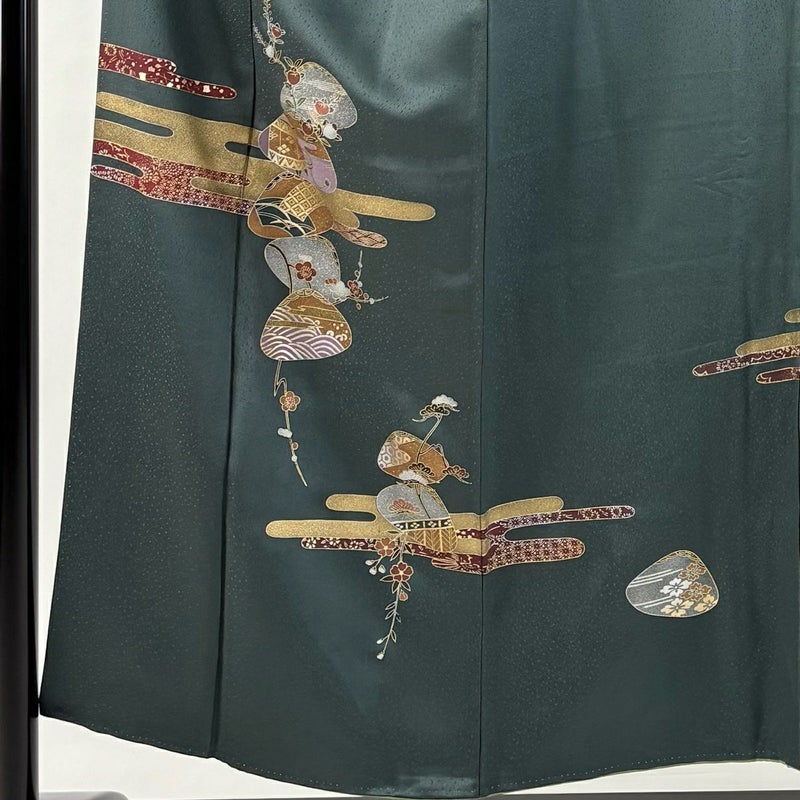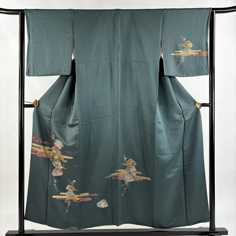 【付下げ】 緑系 深緑 秀品 C 約150cm~約159cm 裄丈63cm-64cm (S)size 袖丈47cm -3980 二万以下