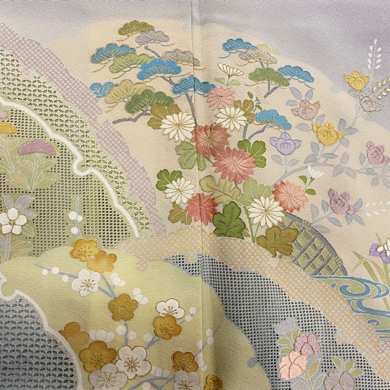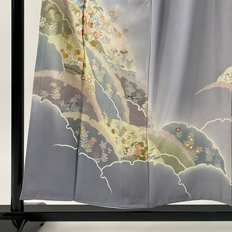 【着物ランク】秀品 【素材】正絹 【身丈】約154cm 【裄丈】約65cm 【袖丈】約48cm 【袖幅】約33.5cm 【前幅】約23.5cm 【後幅】約29cm 【サイズ】M 【着物仕立て】袷 【着用時期】10~5月 【状態ランク】ランクB 【着物着用シーン】披露宴、パーティー、式典、食事会、お茶会、正月