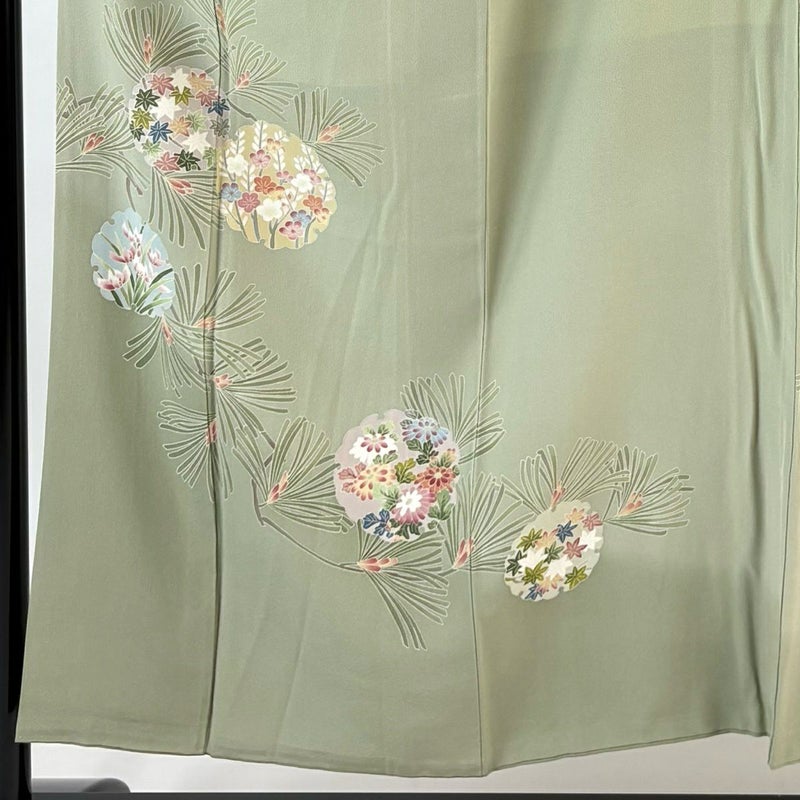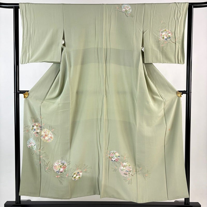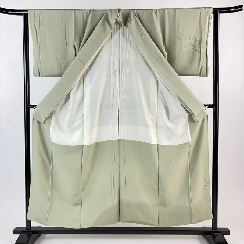 【付下げ】 灰色系 灰緑 秀品 B 約150cm~約159cm 裄丈63cm-64cm (S)size 袖丈47cm 4000-7980 二万以下