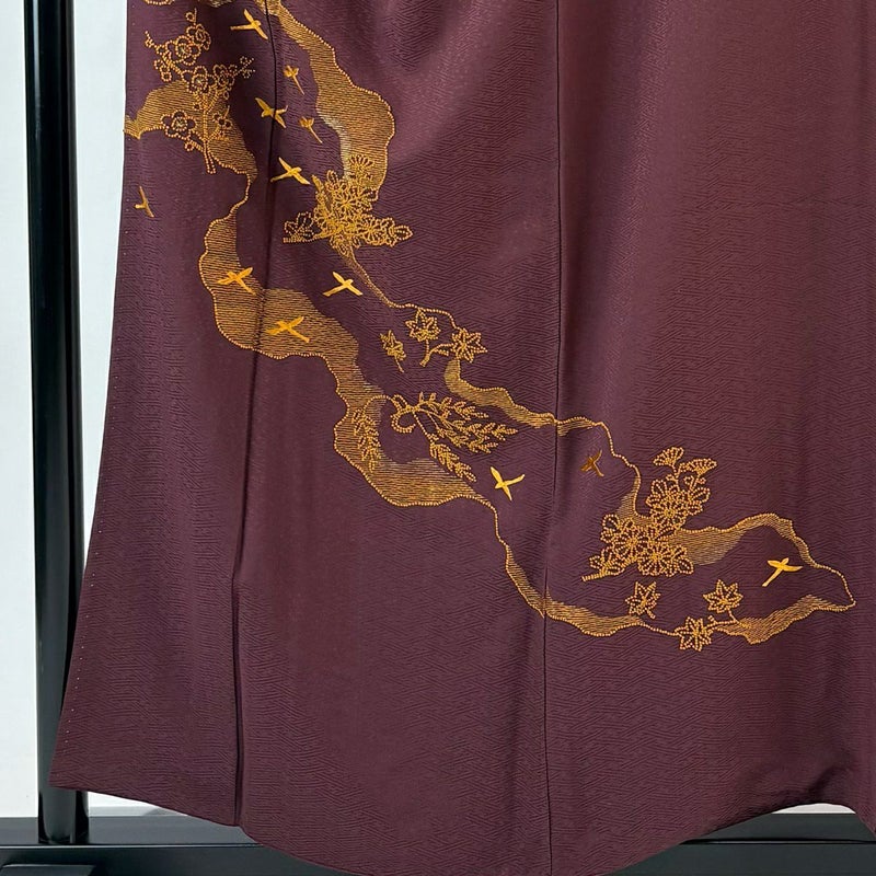 【着物ランク】秀品 【素材】正絹 【身丈】約156.5cm 【裄丈】約64cm 【袖丈】約48cm 【袖幅】約33cm 【前幅】約27cm 【後幅】約30cm 【サイズ】M 【着物仕立て】袷 【着用時期】10~5月 【状態ランク】ランクB 【着物着用シーン】披露宴、パーティー、式典、食事会、お茶会、正月