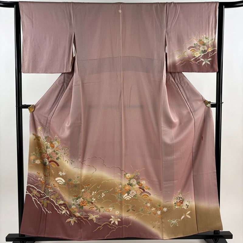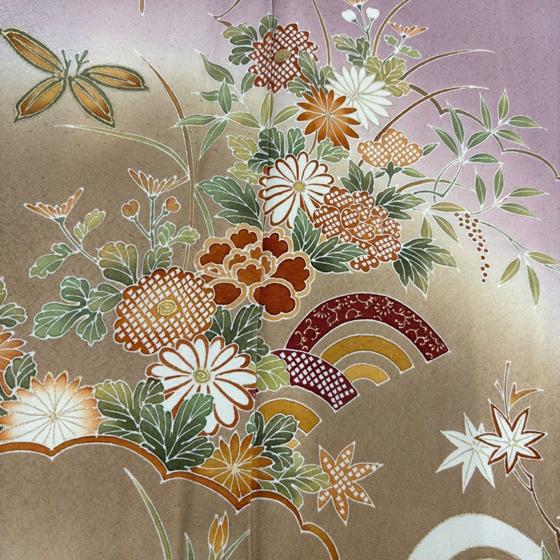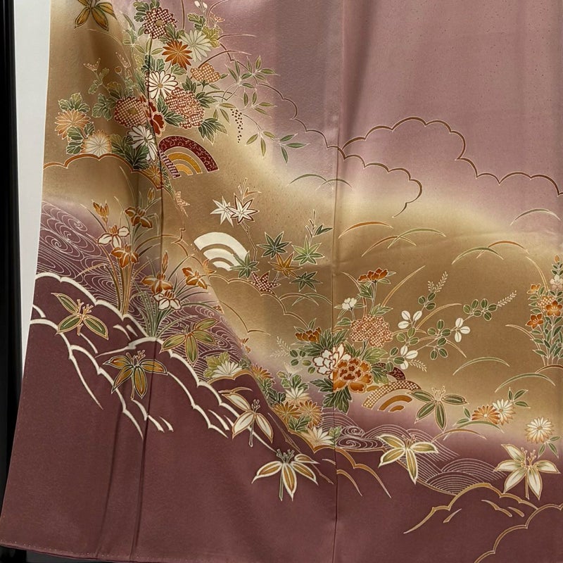【着物ランク】秀品 【素材】正絹 【身丈】約158.5cm 【裄丈】約64cm 【袖丈】約46.5cm 【袖幅】約33cm 【前幅】約24cm 【後幅】約28cm 【サイズ】M 【着物仕立て】袷 【着用時期】10~5月 【状態ランク】ランクC 【着物着用シーン】披露宴、パーティー、式典、食事会、お茶会、正月