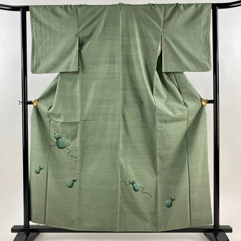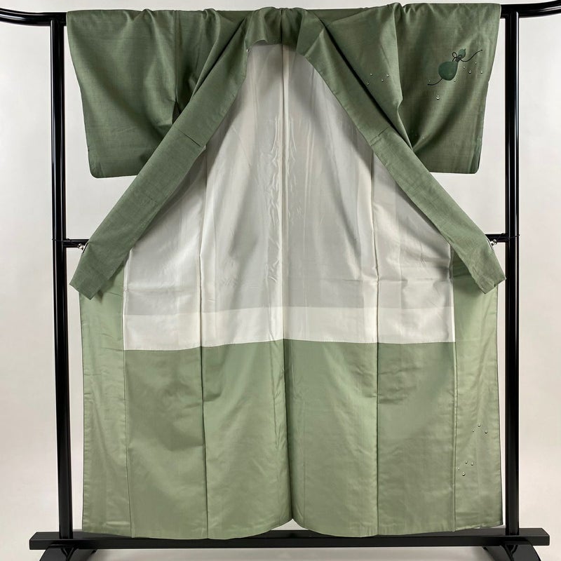 【付下げ】 灰色系 灰緑 秀品 A 約150cm~約159cm 裄丈62cm以下 (S)size 袖丈49cm -3980 美品 二万以下