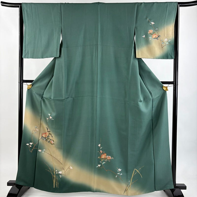【付下げ】 緑系 緑 秀品 B 約160cm~約169cm 裄丈65cm (M)size 袖丈48cm 4000-7980 二万以下
