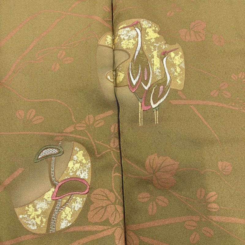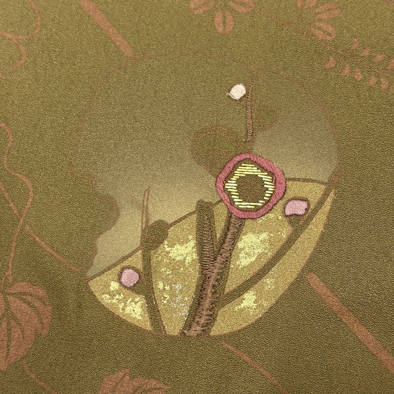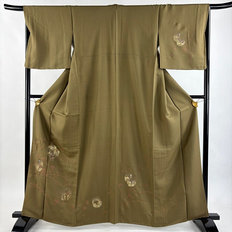 【付下げ】 茶系 茶緑色 秀品 B 約160cm~約169cm 裄丈67cm-68cm (M)size 袖丈48cm 4000-7980 二万以下
