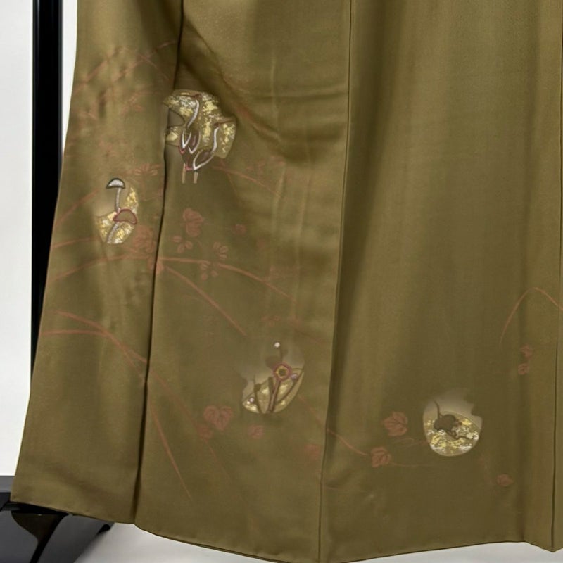 【着物ランク】秀品 【素材】正絹 【身丈】約163.5cm 【裄丈】約67cm 【袖丈】約48cm 【袖幅】約34cm 【前幅】約25cm 【後幅】約30.5cm 【サイズ】M 【着物仕立て】袷 【着用時期】10~5月 【状態ランク】ランクB 【着物着用シーン】披露宴、パーティー、式典、食事会、お茶会、正月