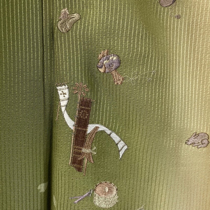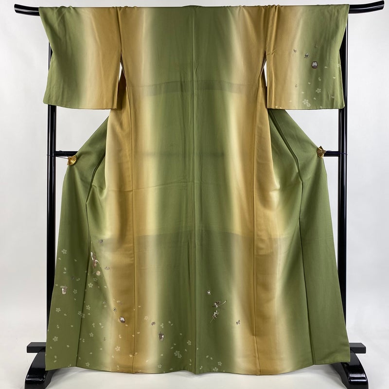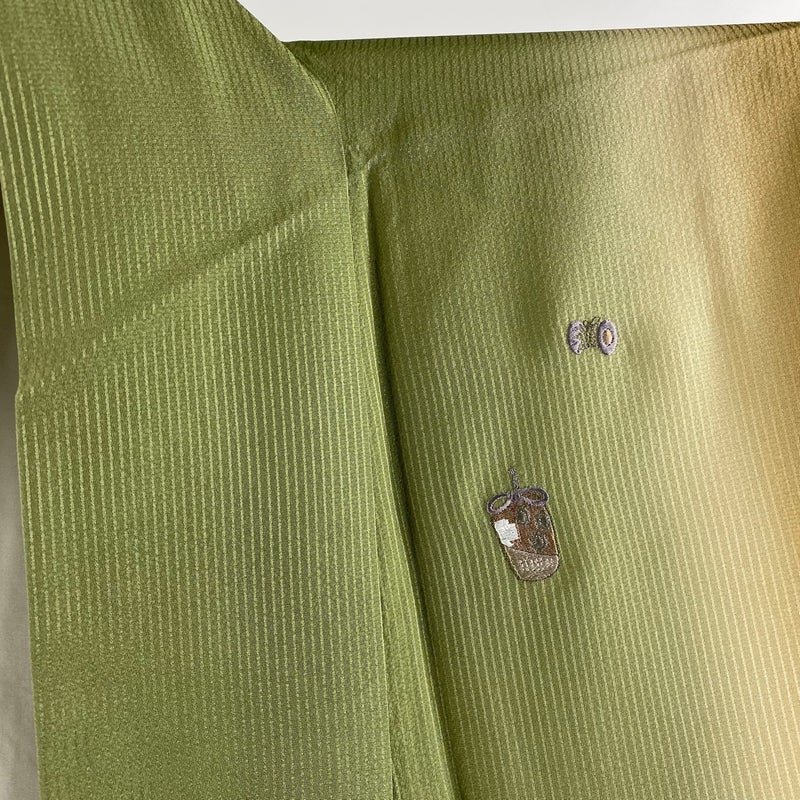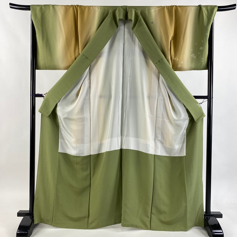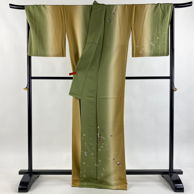 【付下げ】 緑系 抹茶色 逸品 B 約160cm~約169cm 裄丈69cm以上 (L)size 袖丈48cm 30000- 五万以上