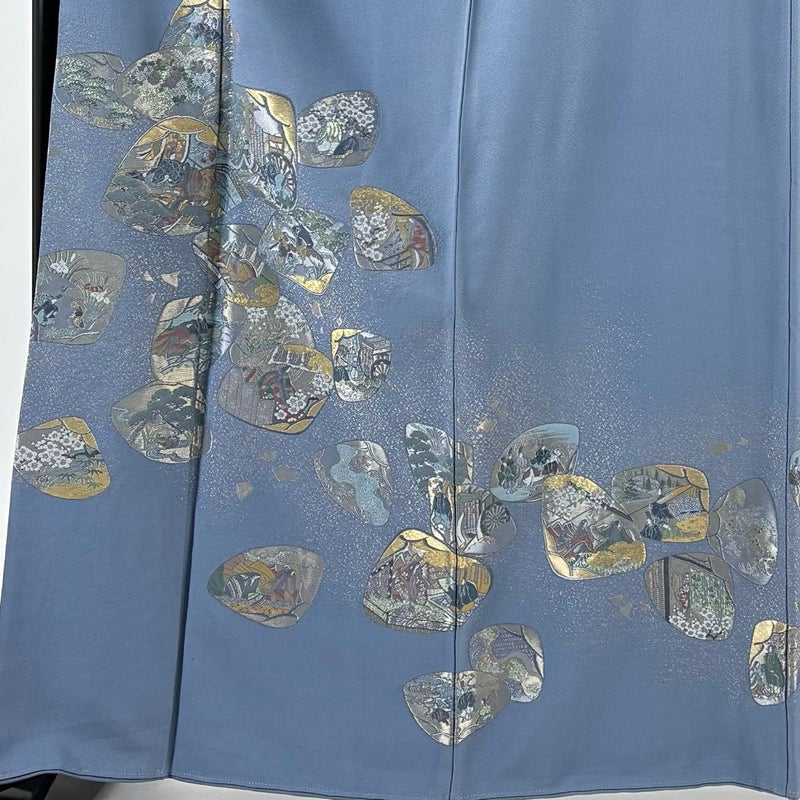 【付下げ】 灰色系 青灰色 秀品 B 約160cm~約169cm 裄丈63cm-64cm (S)size 袖丈47cm 4000-7980 二万以下