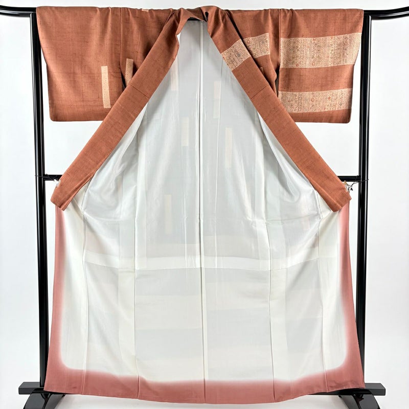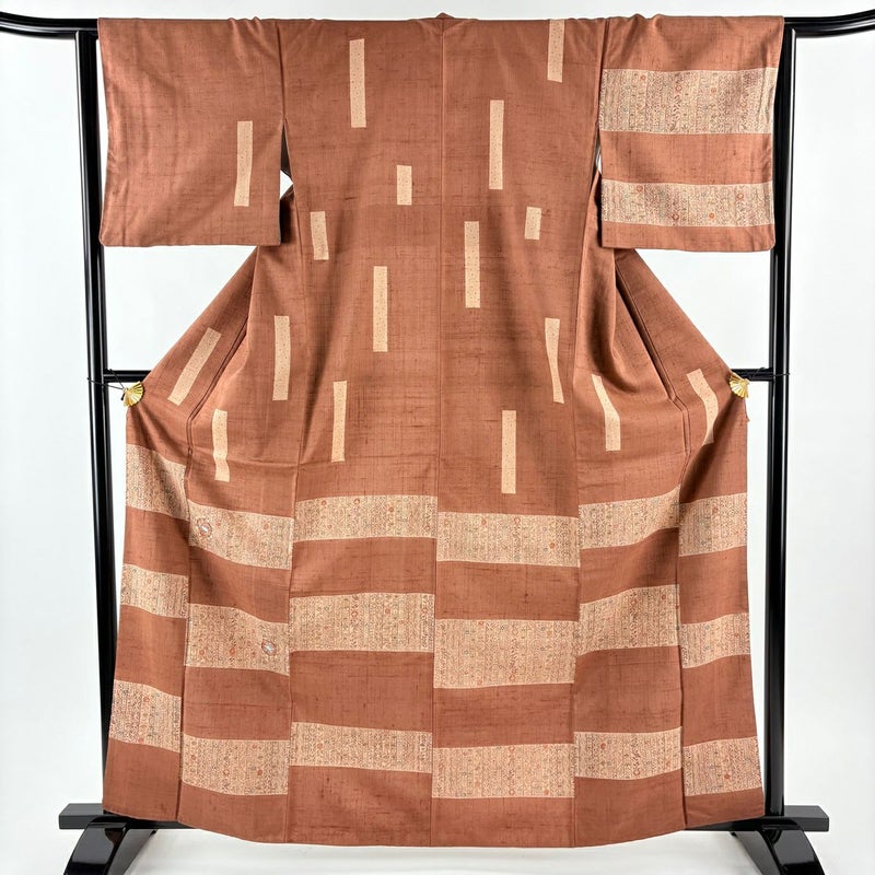 【付下げ】 赤系 赤茶 秀品 A 約160cm~約169cm 裄丈63cm-64cm (M)size 袖丈46cm以下 -3980 美品 二万以下